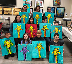 If you have as few as six people you can have a PRIVATE PAINT PARTY and name your own date, time and pick what you what to paint!